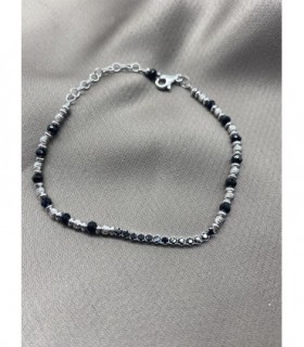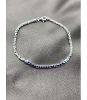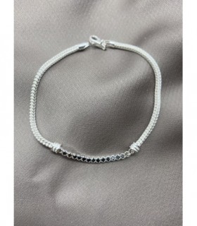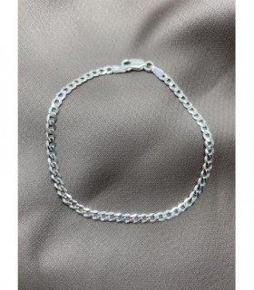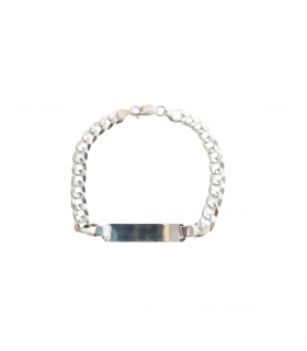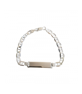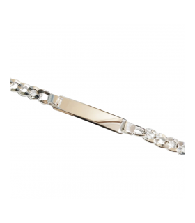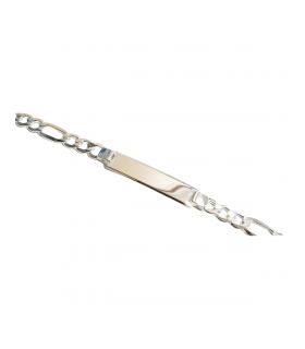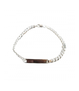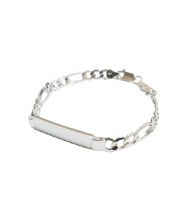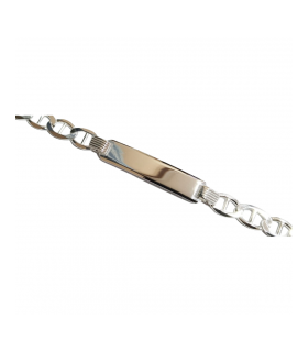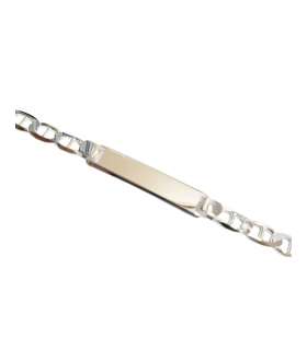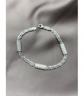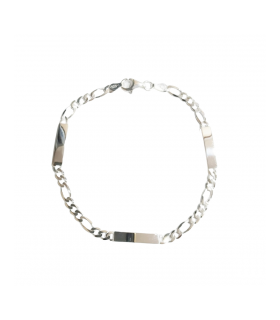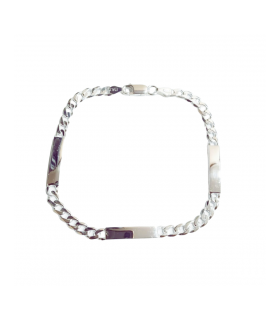 Pulsera de eslabon plano doble intercalado con tramos rectangulares grabados.